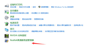 3、在“硬件和声音”的界面中,点击“Realtek高清晰音频管理器”选项,如下图所示: