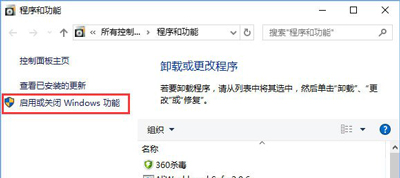 2、在程序和功能界面左侧点击【启用或关闭Windows 功能】;