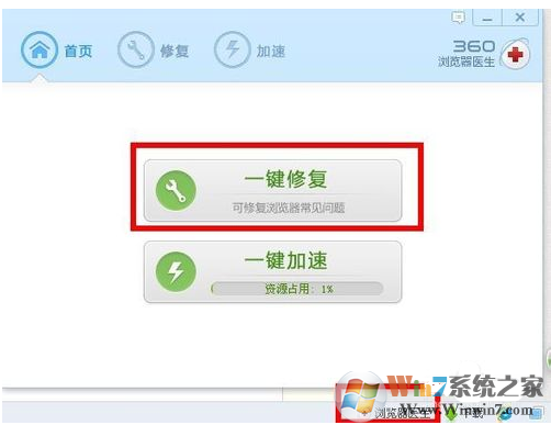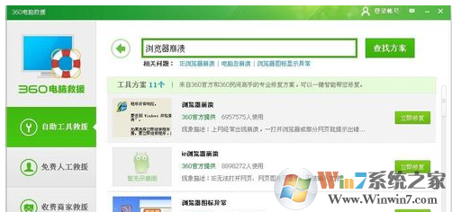 方法四:修复360浏览器一是可以使用浏览器自带的浏览器医生功能进行修复,点击浏览器医生,选择一键修复即可。二是使用360安全卫士的360电脑救援功能,打开电脑救援,输入“浏览器崩溃”,即可出现各种浏览器崩溃问题的修复功能,点击修复就行了。