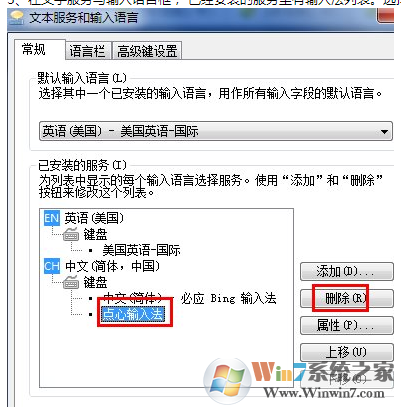 方法六:有些输入法会导致浏览器奔溃(例如:点心,速浪,万能,小晨,速拼等)大家可以更换其他输入法或者在在文字服务与输入语言框, 已经安装的服务里有输入法列表。选择需要删除的输入法,点击右边的(删除)