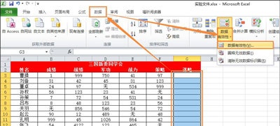1、打开Excel表格,选中需要限制输入的单元格,点击上方的“数据”--“有效性”;