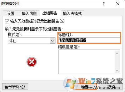 4、在出错警告中输入“请输入有效数字”,点击确定退出;