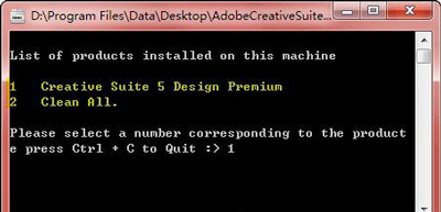 这里要选择你需要的卸载模式,如果卸载Adobe CS3/CS4的软件,则输入数字1,然后回车;要卸载Adobe CS5/CS5.5,则输入数字2并回车,要卸载Adobe Flash Player,则输入数字3并回车。这个卸载工具也有最新版,如果你安装的版本比较新,可以下载最新版的,清理选择你要清理的版本