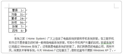 2、将上面Excel中的表格复制到Word中。