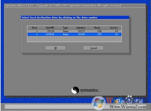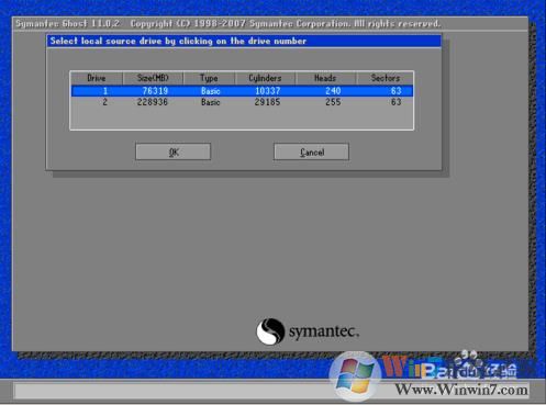 2、我们需要选择源数据硬盘,即原配320GB硬盘(Drive3,Size容量305245MB),并点击“OK”确认,Windows7原配320GB硬盘的字体变成灰色,表示成功作为源数据硬盘。