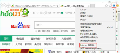 1、打开IE,左键点击右上角齿轮,点选【internet选项】。