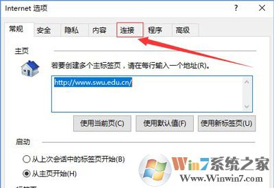 2、在【internet选项】下点选【连接】。