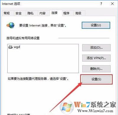 3、【连接】选项下选择【设置】。