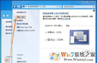 2、在弹出的窗口上找到“显示”按钮点击它然后在继续下一窗口上点击【调整分辨率】按钮。