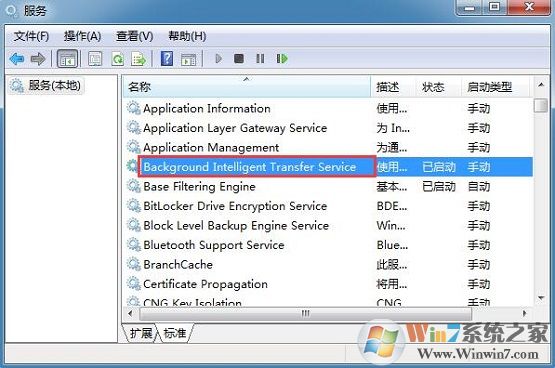 3、在服务列表中找到Background Intelligent Transfer Service,双击它。