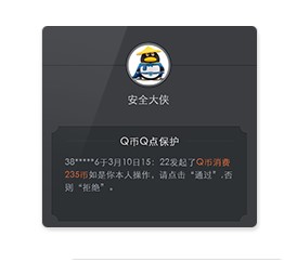 装备被洗劫一空?不怕,财产保护来帮您!消费您的Q币,登录您的游戏,必须有您的二次确认。