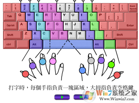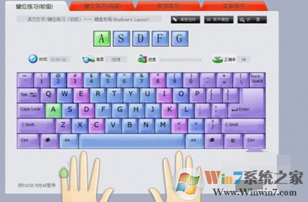 熟悉了这些标准指法以后,剩下的就是按照练习了。也就是说,你可以按照英文26个字母的顺序看着键盘依次用标准指法去打它们,以一天练习四个字母计算,最多7天你的盲打就基本练习成功了。