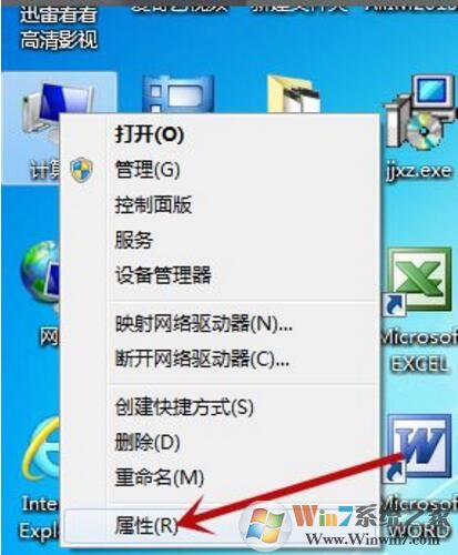 4、在计算机上找到设备管理器,首先鼠标右键单击计算机,在下拉菜单中选择属性