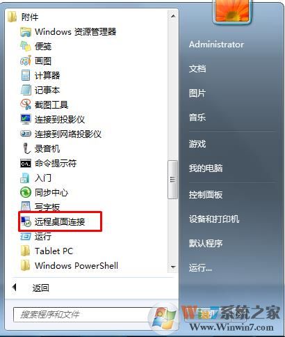 2、我们也可以通过开始—所有程序——附件,打开远程桌面连接;