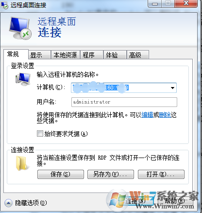 4、在相关设置调整好后,我们就可以点击远程桌面连接窗口下方的【连接】,如下图