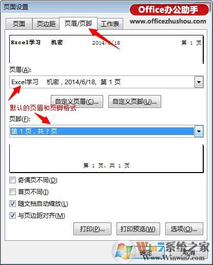 2、在弹出的页面设置对话框中,选择页眉/页脚标签,就可以根据自己的需要设置页眉/页脚了。