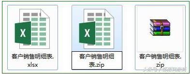 将原始文件:客户销售明细表.xlsx修改为客户销售明细表.zip,这时会变成解压缩格式;