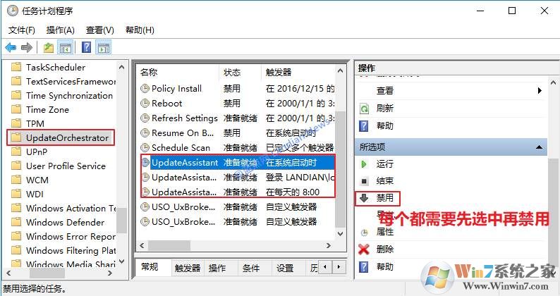 此处路径为:任务计划程序库---Microsoft---Windows---UpdateOrchestrator