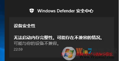 开启后会提示你重启设备。并且不是所有的设备都能开启,你可能会看到“无法启动内存完整性。可能存在不兼容的情况”的通知消息。如图:
