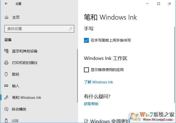 进入“设置 - 设备 - 笔和Windows Ink”设置界面,把“Windows Ink工作区”下的“显示推荐使用的应用”选项取消勾选即可。