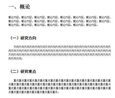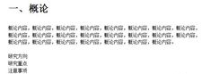 3.后面输概论内容,此处概论为一级标题,如果里面有很多内容,就需要二级标题了,添加方式是一样的。比如我概论里面有三个要点。分别是:研究方向、研究重点、注意事项,输入完成后,选中三个要点,点击样式中的“标题2”;
