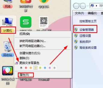 1、在计算机上右键单击,点开属性--设备管理器,查看我的电脑显卡配置;