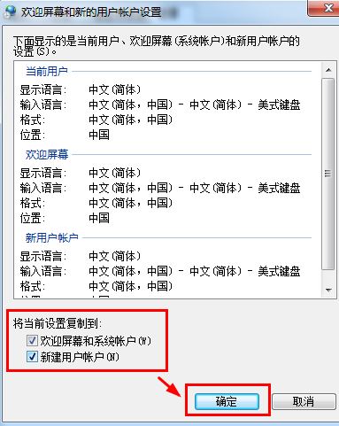 3、在欢迎屏幕和新的用户账户设置 界面 勾选【欢迎屏幕和系统账户】、【新建用户账户】,然后点击确定保存设置即可.