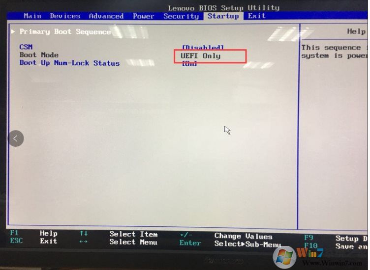 3、进入Startup->CSM设置为Disable,注意此时Boot Mode为UEFI Only;