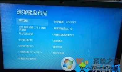 2、这时首先会出现选择键盘布局的界面,然后我们选择:微软拼音;