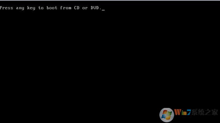 8、在重启后一般来说会自动启动U盘中的Win7安装程序,如果屏幕提示 press any key to boot form cd or DVD ,我们就按任意键,进入到Win7安装界面