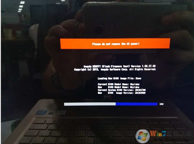 8、重启电脑,刷新BIOS就开始工作了,这时我们不需要去操作。