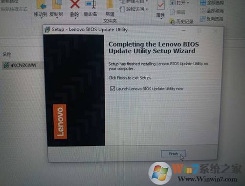 10、解压缩过程完成,勾选的项目表示 立马重启升级BIOS,所以要保存好未保存的工作再点finsh(点完成前确认一下电源是否插上以防断电。)