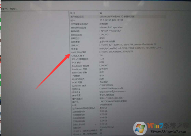 9、升级成功之后,会自动重新启动;进入系统桌面,查看BIOS,按键盘上的”WIN+R”组合键,输入” msinfo32”,查看是否升级成功,如成功,就会显示当前的BIOS版本及版本日期;