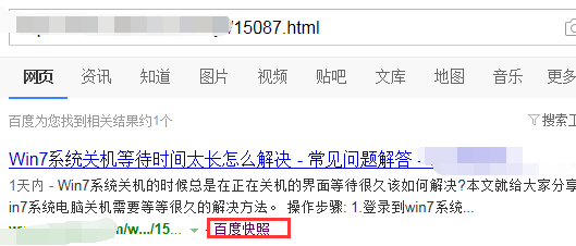 2、然后粘贴到百度上搜索,会看到有百度快照的连接,我们点击进去;