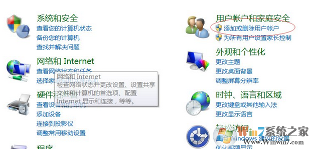 2、如果更改过用户名,那就改回来试一试。找到控制面板,点击圆圈里的添加或删除用户账户。