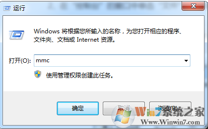 1、点击电脑桌面左下角的“开始”按钮,找到“运行”,在打开列表中输入“mmc”,单击确定后进入控制台。