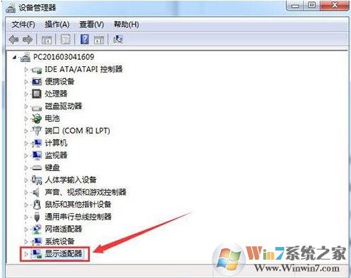 3、点击设备管理器,进入设备管理器界面,选择列表中的显示设备器,双击显示显卡类型。如图所示: