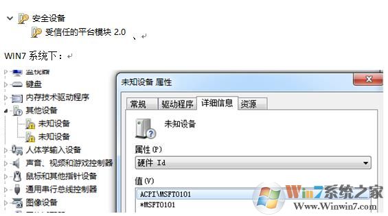 通过查询硬件ID该硬件为Intel PTT TPM 2.0,而win7系统本身不支持TPM 2.0。