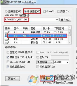 3、如果您是要备份C盘,需要选中”备份分区“, 编辑备份文件的保存路径, 选中需要备份的盘符,比如说要备份的是C盘, 如下图所示: