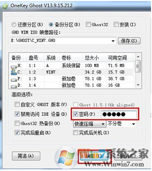 6、为了保证自己备份后的文件的安全性,可以选中“密码”选项,便可以设置密码,保证系统或者分区文件的安全性。