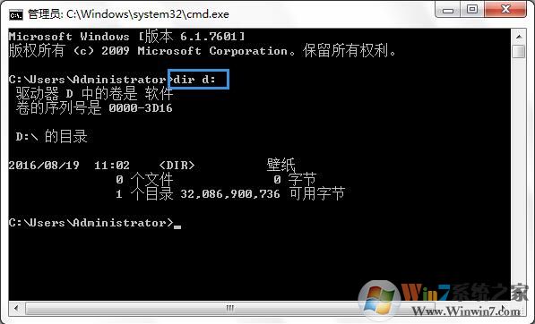 2、输入“dir d:”可以查看到d盘中所有未隐藏的文件,如图所示: