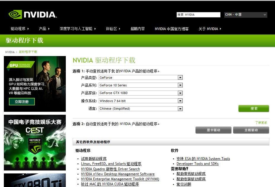 最近很多网友在入手这块显卡之前都会在网上搜索该显卡是否可以在win7系统中使用,答案当然是肯定的,为此小编特意去浏览了NVIdia的官网,去驱动下载专区寻找了是否存在1080的显卡驱动,如下图所示确实是存在的