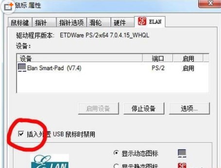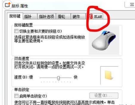 2、在鼠标属性界面点击最后一个标签ELAN;