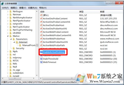 3、在右侧找到 EnableActiveProbing 值;
