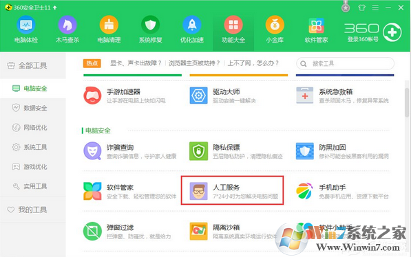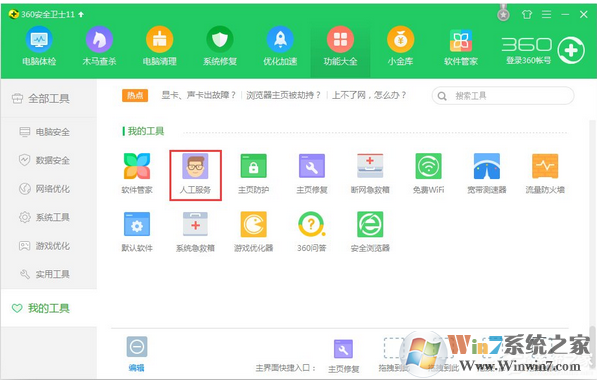 3、在“我的工具”中找到刚才已经添加好的“人工服务”,点击打开它。