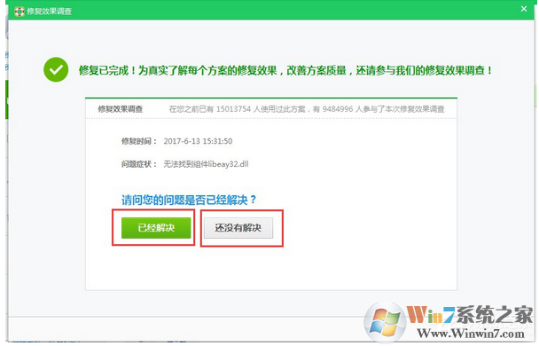 6、好了,修复完成,可以自己先去验证一下是不是真的解决了,如果真的解决了,那么可以点击“已经解决”,如果没有解决,那么可以点击“还没有解决”,这个时候会给你推荐其他的方案,然后再按照推荐的方案来试,一般都会解决问题。