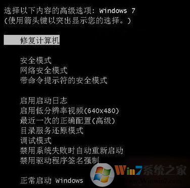 开机时按F8键,进入Windows7高级启动选项,这和WindowsXP的安全模式比较,多了第一项的“修复计算机”和后面的“禁用系统失效时自动重启”,“禁用驱动程序签名强制”三项,而“修复计算机”就是Windows7系统光盘启动修复选项全部功能。