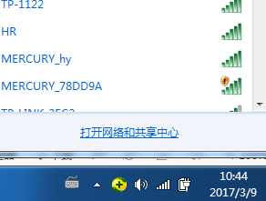 1、首先我们点击任务栏右下角无线链接图标,点击“打开网络的共享中心”,如下图;