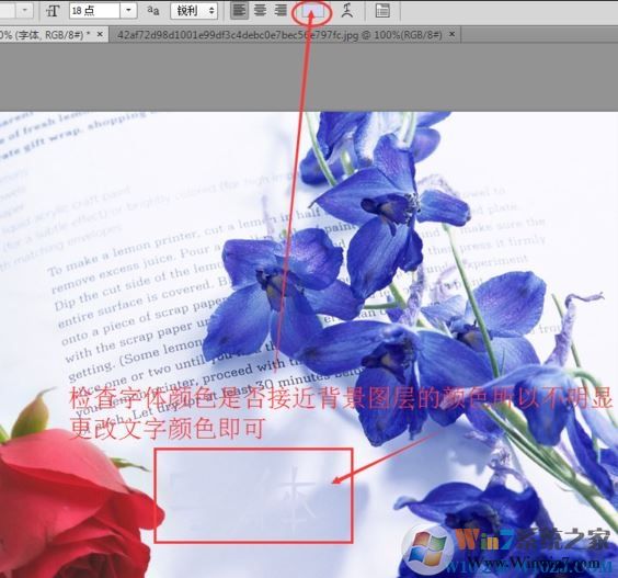 1、首先查看文字的颜色与背景图片是否相同;