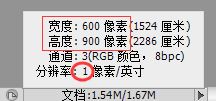 3、图片分辨率过大,导致正常字体大小的问题无法看到,先查看此图的图像信息,记住宽高像素值,宽600像素,高900像素,分辨率却只有1;